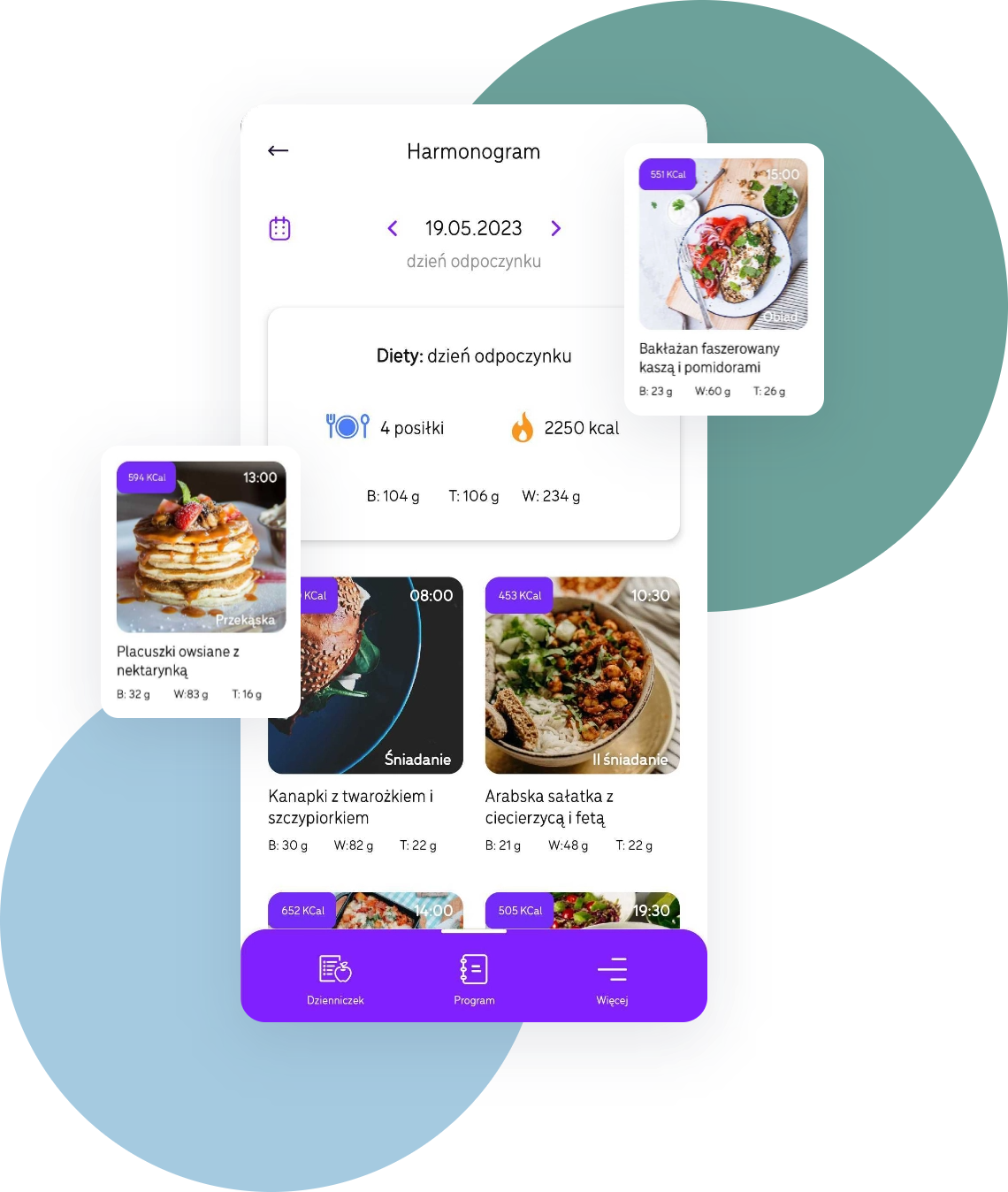 Masz dość szukania przepisów w kółko? Potrzebujesz wsparcia w zdrowym odżywianiu? Mam dla Ciebie idealne rozwiązanie – kupując jeden z czterech pakietów współpracy dietetycznej, otrzymujesz dostęp do zaawansowanej aplikacji dietetycznej bez dodatkowych opłat! Co to oznacza? Wygodę – jadłospis zawsze pod ręką, w telefonie. Elastyczność – wymiana składników i posiłków, to pełna kontrola nad dietą. A do tego – motywację, której potrzebujesz, by osiągnąć swoje cele. Jeśli nie potrzebujesz konsultacji, nic straconego! Możesz mieć aplikację z bazą przepisów na wyciągnięcie ręki – Nie czekaj! Rozpocznij swoją przemianę już dziś! Pamiętaj – zdrowie zaczyna się od talerza!